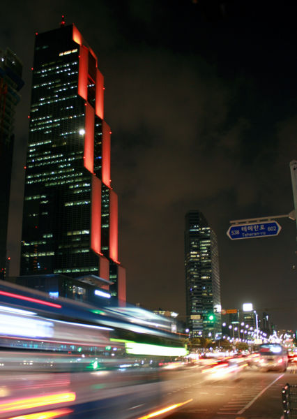 In den ersten Tagen hatte ich nur am Abend Zeit mir Seoul anzuschauen. Die Hauptstadt liegt zu beiden Seiten des Hangang (Han-Fluss). Ich verließ mein Hotel und lief zum Olympiagelände von 1988. Mein erster Versuch, die mehrspurige Straße hinter den Olympiastadien zum Fluss zu überqueren, scheiterte. Nach einiger Zeit fand ich eine Unterführung. Vom Ufer das Hangang aus hatte ich eine herrliche Sicht auf die unzähligen Hochhäuser. Das höchste Gebäude ist der noch im Bau befindliche Lotte World Tower. Der Tower, der zu großen Teilen schon bezogen ist, stellt mit seinen 555 m die umgebenden Häuser, die ebenfalls schon sehr hoch sind, locker in den Schatten. Der teilweise bis zu 1 km breite Fluss ist von vielen hohen Brücken überspannt.