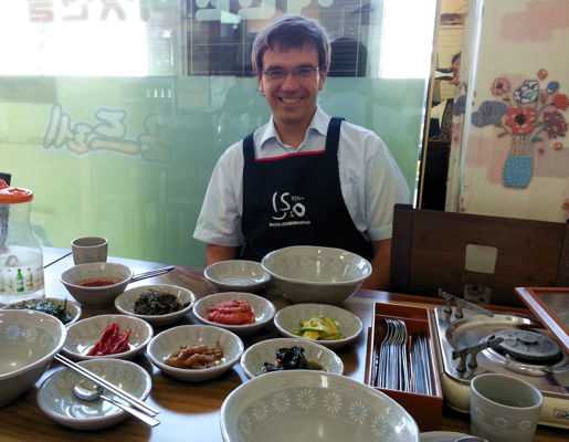 Mein Flug mit einem A380 führte mich von Berlin über Paris nach Seoul. In den nächsten Tagen hatte ich zwar mein Basislager in Gangnam, aber meine Termine lagen stets südlich von Seoul. Auf den ersten Blick erscheint Seoul als eine Dschungel von Hochhäusern durchzogen von gut ausgebauten in sich verschlungenen mehrspurigen Hochstraßen mit zähem Verkehr. In der Metropolregion Seoul (Sudogwon) wohnen 25 Mio. Einwohner. Außerhalb der Stadt sind die modernen Autobahnen meist frei und man kommt zügig voran. Die Landschaft ist bergig, sehr grün und gefühlt besteht jedes Dorf ebenfalls nur aus Hochhäusern, die weithin sichtbar sind. Einfamilienhaussiedlungen, wie in Europa, habe ich kein gesehen.