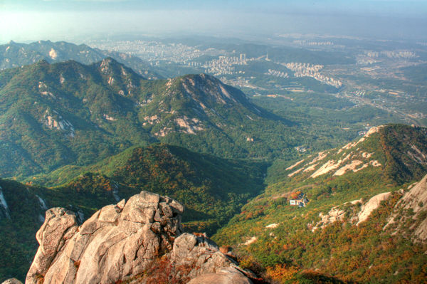 Seoul besteht nicht nur aus einem Meer aus Hochhäusern, sondern es gibt auch einige grüne Parks. Im Norden der Stadt befindet sich ein Teil des Bukhansan (Nordberg) Nationalparks im Stadtgebiet. Die bis zu 800 Meter hohen Granitberge des Parks sind praktisch von jedem Ort der Stadt aus zu sehen. Der Park mit seinen knapp 80 Quadratkilometern weißt, aufgrund seiner Nähe zu Seoul, eine der weltweit höchsten Besucherzahlen (5 Mio. Besucher pro Jahr) aus.
